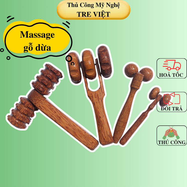 Tre Việt – Viet Bamboo cung cấp sản phẩm số lượng lớn Cây lăn massage gỗ dừa cầm tay dùng massage mặt/ cổ/ vai/ gáy/ lưng