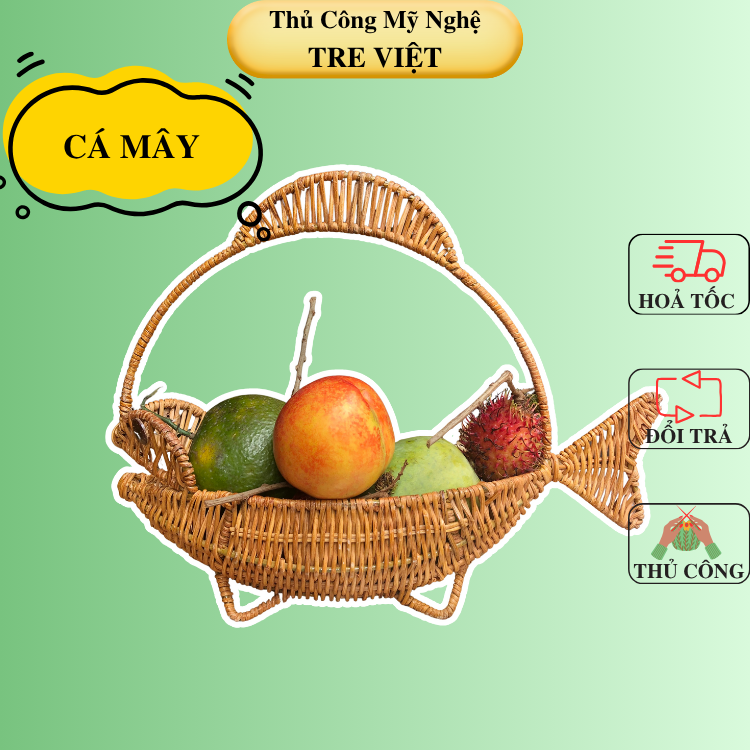 Rổ mây trang trí decor hình con cá đựng trái cây/ bánh kẹo