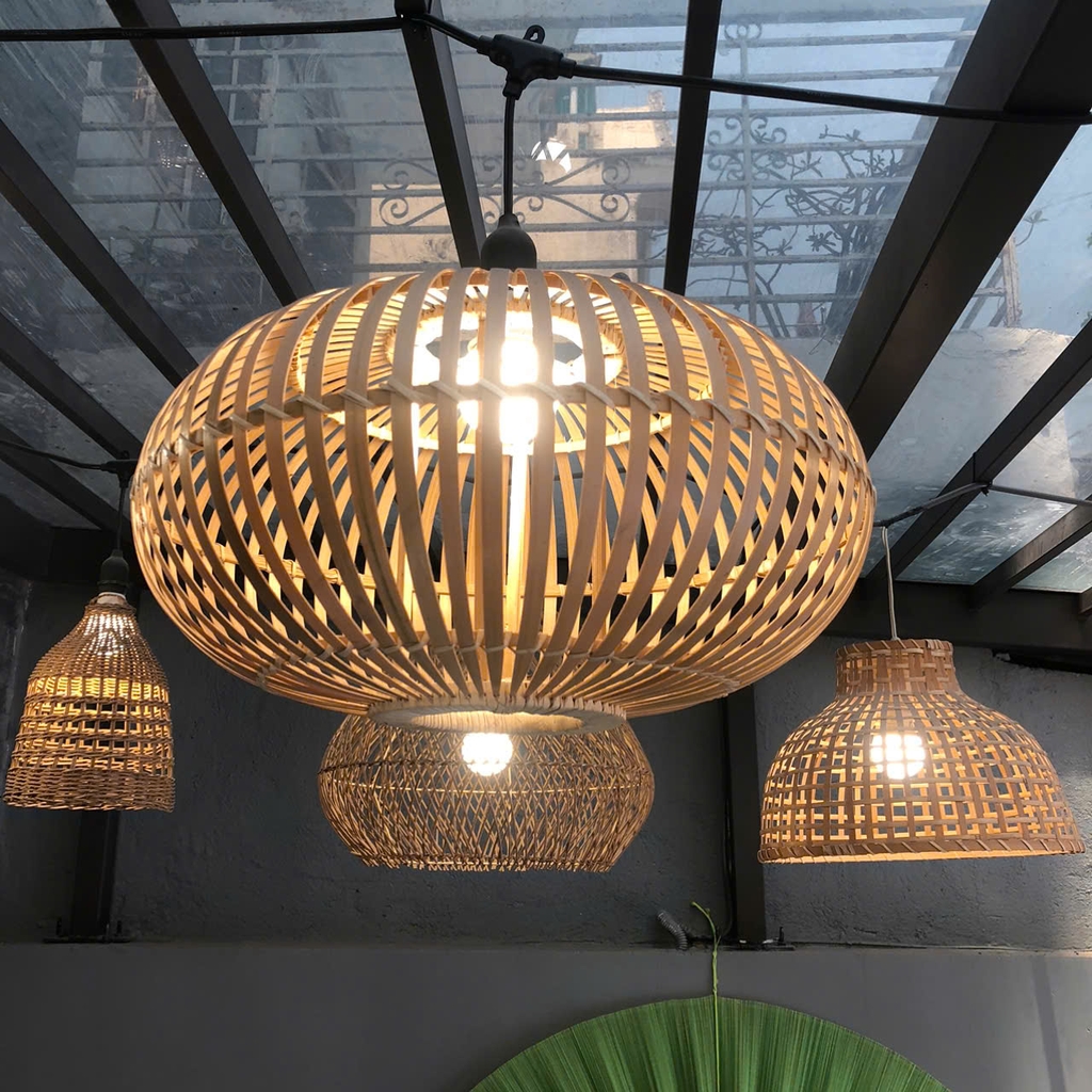 Chụp Đèn Tre Quả Bí Trang Trí Nhà hàng, Khách Sạn, Quán Cafe, Homestay