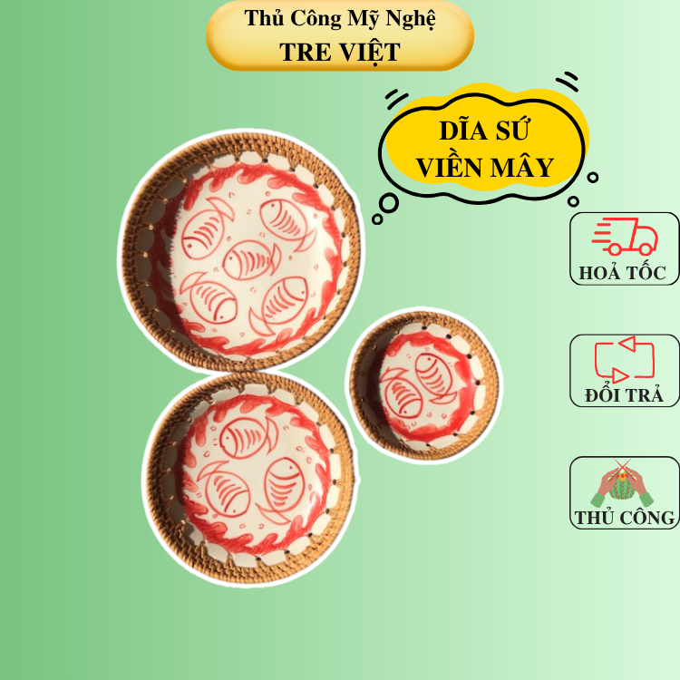 Tre Việt chuyên cung cấp sỉ lẻ sản phẩm từ mây tre đan như Đĩa Sứ Đan Mây - Đĩa Mây Tròn Kết Hợp Gốm Sứ.