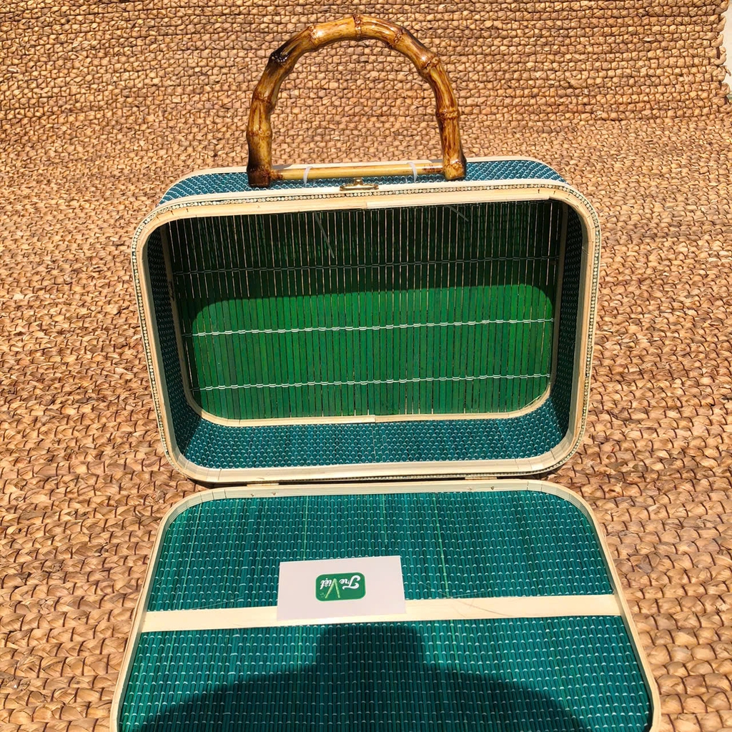 - Nguyên liệu: thân 100% tre , quai nhựa giả trúc
