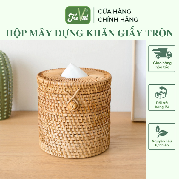 Tre Việt chuyên cung cấp sỉ lẻ sản phẩm từ mây tre đan như Hộp Mây Tròn Đựng Khăn Giấy - Rattan Tissue Box