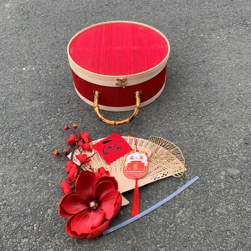 Hộp tre tròn trang trí Tết - Hộp tre làm quà tặng sang trọng