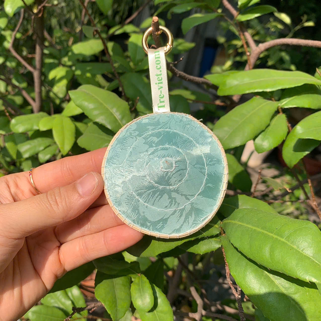 - Chất liệu: 1 lớp lá, 1 lớp lụa, chằm tre
