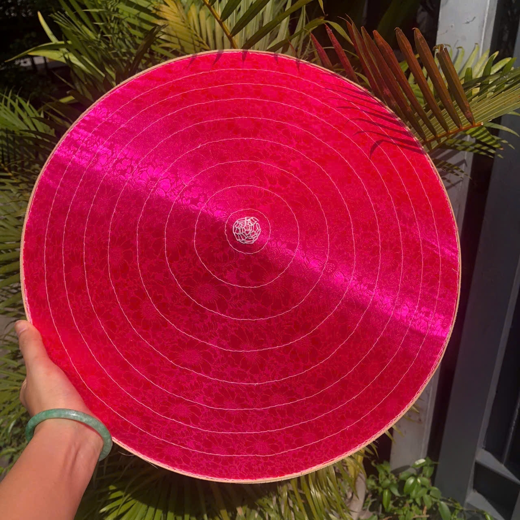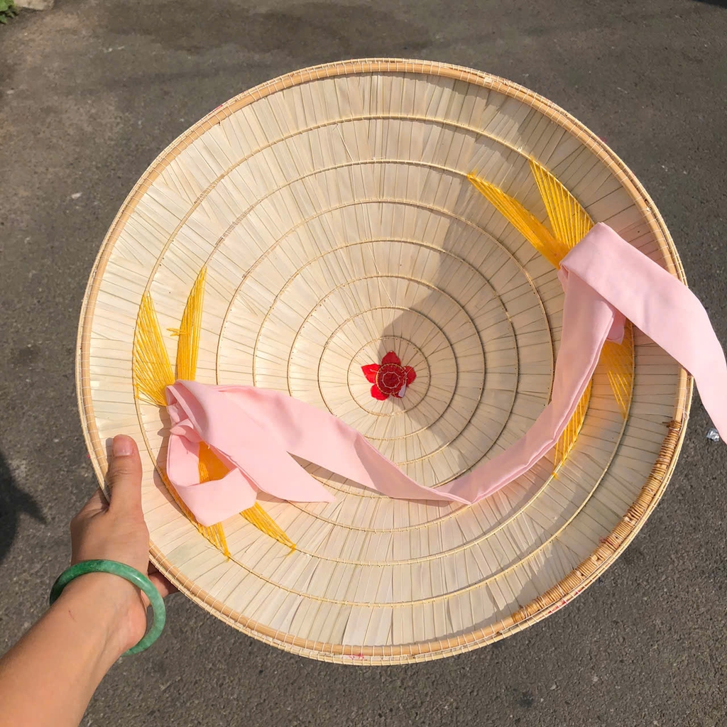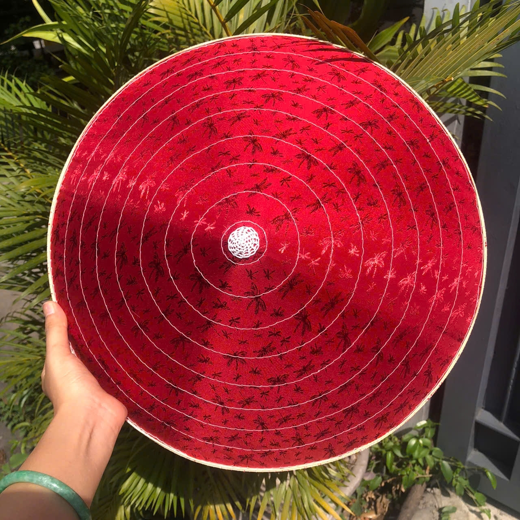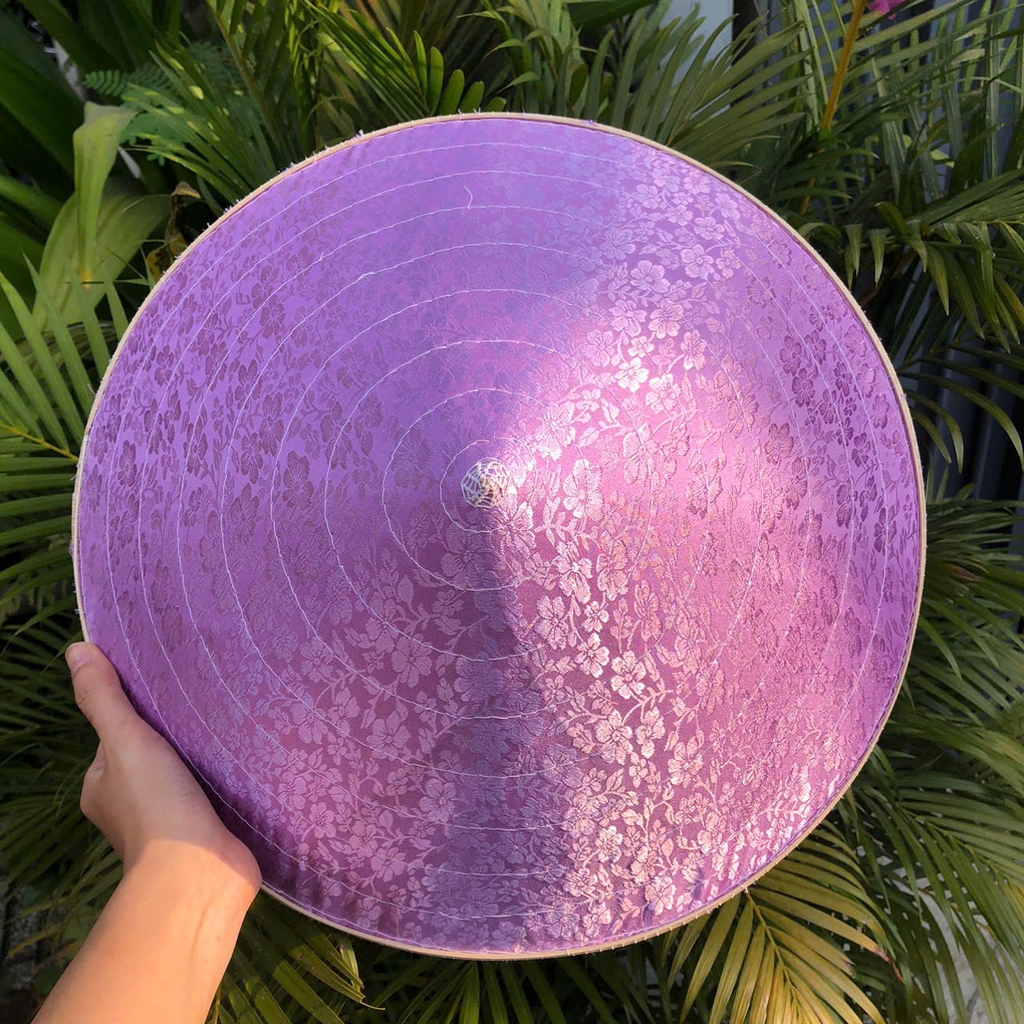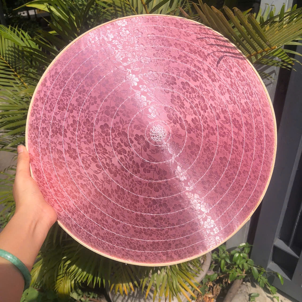 - Chất liệu: 1 lớp lá, 1 lớp lụa, chằm tre