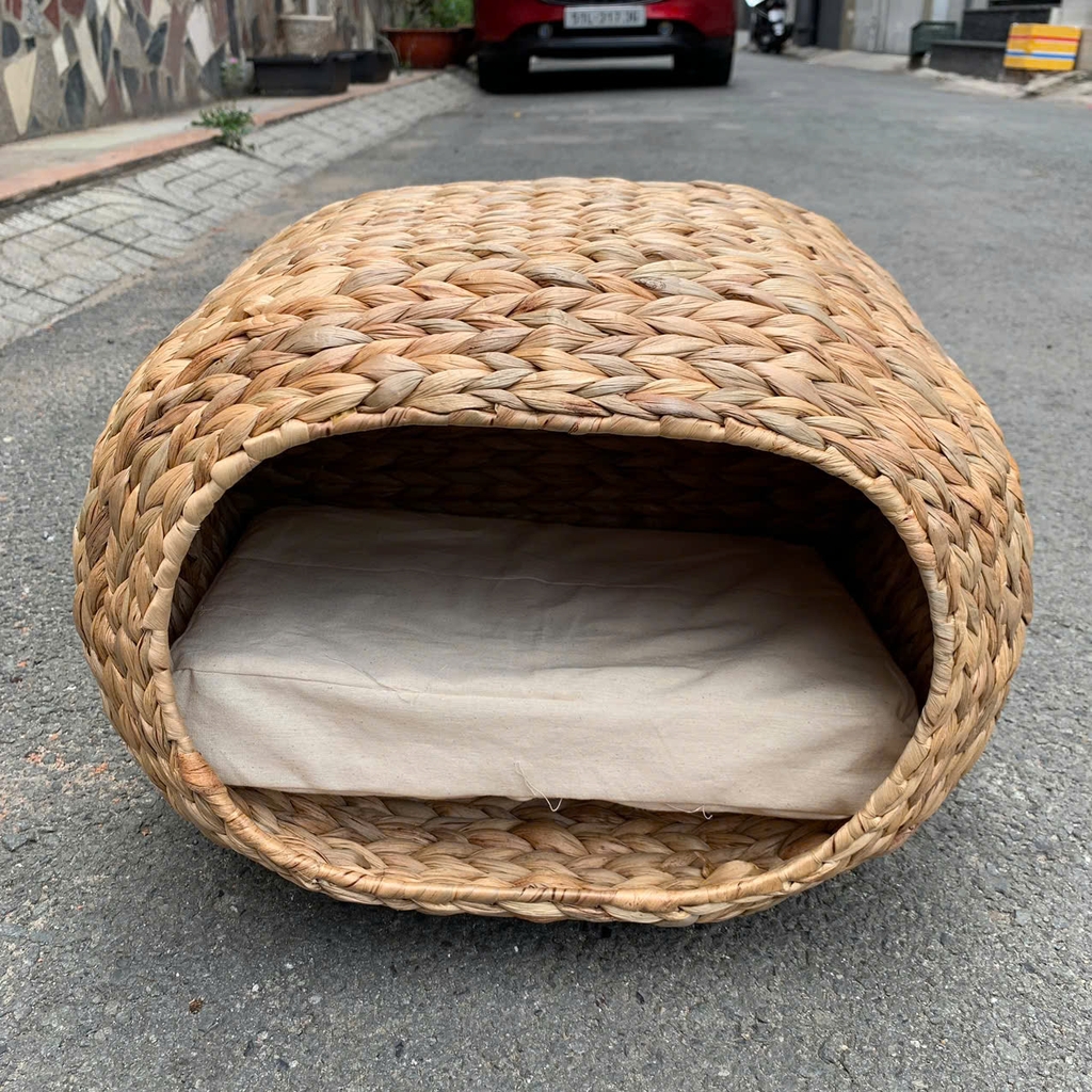 Nhà Ổ Mèo bằng lục bình - Ổ đệm cho thú cưng - Nhà thú cưng kèm lót