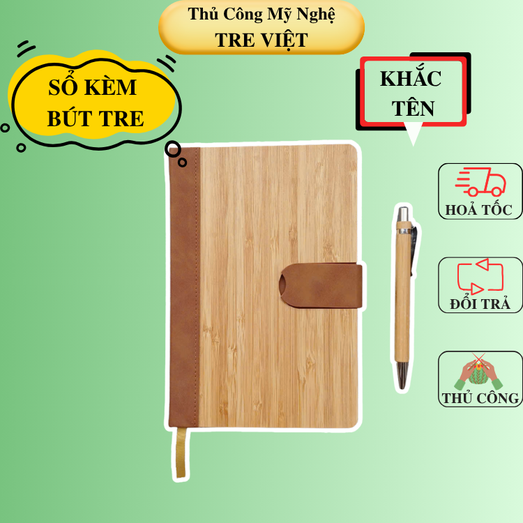 - 1 sổ tay (mặt trước tre, mặt sau da)